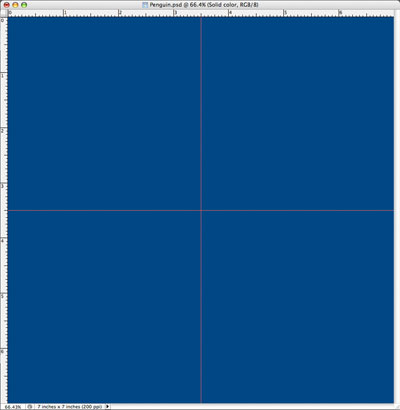 Let's set the size to 7 inches by 7 inches at 200 dpi. Drop a center horizontal guide and a center vertical guide. You pull the guides out of the rulers at the top and left of your image. If there are no rulers showing go to