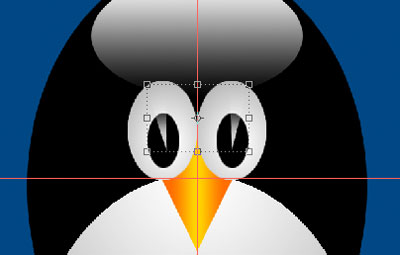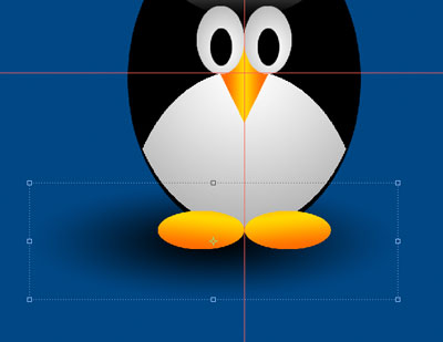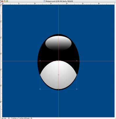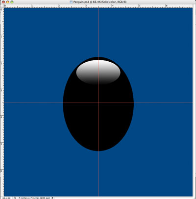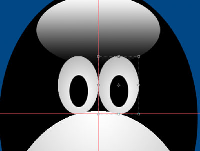 What we want to do now is draw an oval for the body of the penguin. We also want him centered, so start from the center of your guides. While holding [alt] on a PC or [option] on a Mac, click and start dragging out to form your oval. If it's not to your liking after you draw the selection, no problem, just draw a new selection by repeating the process. You can use your paint bucket to fill the selection or