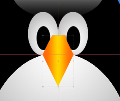 Make a beak layer. For the beak we can use the polygonal marquee to create our selection. Draw out the area we want to be the beak. Fill it with a color or even a yellow to orange gradient. Once you have the beak colored, we'll have to re-arrange the layers so that the beak is underneath the eyes, but above the white belly.